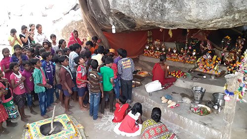 The forests around the Bhola Giri mountain range in Orissa have been sacred for thousands of years due to having been visited by Lord Ramachandra and the Pandavas, and as such sadhus have been residing throughout this area from ancient times. Over the last 10 years, devotees from the Bhaktivedanta Ashram have been meeting with and trying to help some of the present sadhus. In the past we have provided solar lighting to some ashrams, running water (through water tanks fed by gravity from a nearby waterfall), and constructed rooms for sadhus to stay as well as bathrooms and toilets for elderly sadhus.