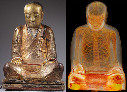 Scientists made a bizarre discovery when they took a CT scan of an ancient Buddha statue from China. Inside was a mummy sitting in the same lotus position. Further investigation revealed that the organs had been removed and replaced by scraps of paper with Chinese writing on them.