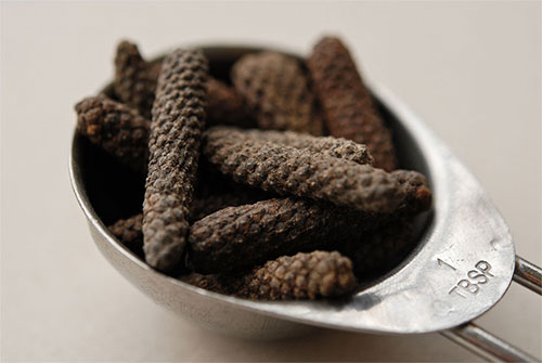 Pippali fruit (also known as long pepper) is the best among all the medicines. It is light, oily, bitter, hot and pungent in taste. Ripe Pippali is heavy, sweet, and cold and causes kapha. It increases pitta in this stage and balances pitta when in dry state. Pippali increases fire, is sweet in taste and strengthening.