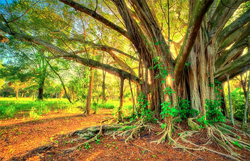 Banyan is the National Tree of India. It has the widest reaching roots of all known trees, easily covering several hectares. It is said that at one time more than 10, 000 people can sit under its shade at one time.