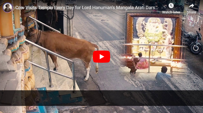 | This Cow Visits Temple Every Day for Lord Hanuman's Mangala Arati Darshana Here is an interesting story of a cow who comes every day to have darshana of Lord Hanuman. The Panchamukha Hanuman Temple located in Taramani, Chennai, is visited by this special devotee every day. |